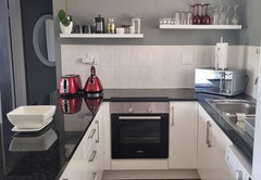 Die Küche ist komplett für Selbstversorger ausgestattet und verfügt über eine Waschmaschine und einen Trockner. Die Lounge ist komfortabel und verfügt über einen Fernseher – Gäste müssen ihren eigenen Decoder für DStv mitbringen. Die Lounge öffnet sich zu einer Terrasse mit Blick auf die Lagune und verfügt über Sitzgelegenheiten im Freien und Grillmöglichkeiten.