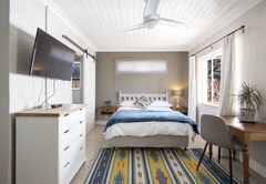 Dieses Gerät eignet sich für zwei Personen und ist mit einem Queensize-Bett und einem eigenen Bad mit Dusche und Badewanne ausgestattet. Zusätzliche Matratzen können arrangiert werden, um zwei Kinder unterzubringen. Die Küche ist mit einem Kühlschrank, einer Mikrowelle, einem Herd, einem Backofen, einem Toaster und einem Wasserkocher ausgestattet. Es gibt einen Wohn- und Essbereich, einen TV mit DStv, WLAN sowie Tee- und Kaffeezubehör. Ein Bügeleisen, ein Ventilator und ein Haartrockner sind ebenfalls vorhanden.