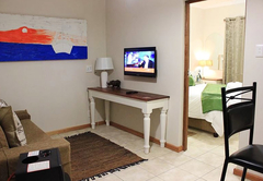 Kudu has one room with a queen size bed and a sleeper couch in lounge. The bathroom has a shower. The kitchenette has a microwave, kettle and toaster available. There is free uncapped Fibre Wi-Fi and DSTV bouquet. Fans and gas heaters are available in units.