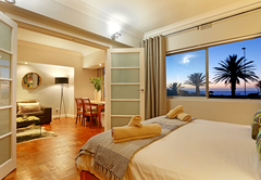 Adenium Beachfront Apartment is a beautiful two bedroom self catering apartment in Rhodora Court, Mouille Point. From this fabulous location you are close to the beach, lovely restaurants and bars, the V&A Waterfront, the city centre and more. Adenium Beachfront Apartment is ideally suited to both business and leisure travellers. Cape Town International Airport is only 30 minutes away and you are near to major transport routes, making travelling and sightseeing a breeze. The apartment sleeps four guests in two bedrooms. The main bedroom has a lovely queen sized bed and the second bedroom has twin beds. There is a luxury bathroom with a double shower shared by both bedrooms. The lounge and dining area is open plan and boasts magnificent sea views. The lounge has a TV with a DVD player and modern furniture, The kitchen is exquisite with granite counter tops, a central work space and all the facilities required for a comfortable self catering stay.