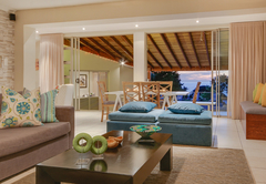 Die großzügige Lounge ist mit einem Gaskamin ausgestattet, der für eine gemütliche Atmosphäre sorgt, während der Essbereich, das Fernsehzimmer und das Gästebad mit Dusche zur Funktionalität der Villa beitragen. Die Cocktailbar lädt mit bequemen Sitzgelegenheiten zum Entspannen ein und die großzügig bemessene Küche erfüllt alle Anforderungen zur Selbstversorgung. Zu den weiteren Annehmlichkeiten gehören ein Zigarrenzimmer, ein HD-Plasmafernseher mit DStv, ein DVD-Player, ein Blu-ray-Player und ein hochmodernes Surround-Sound-System.
