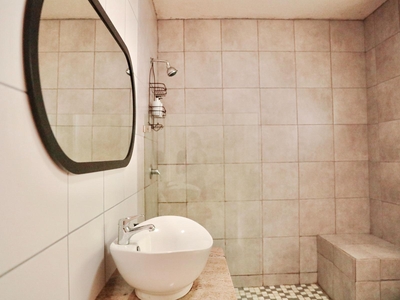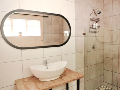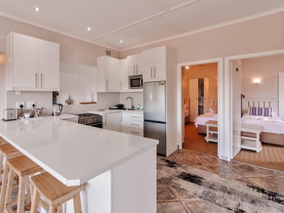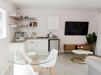 Guests can enjoy modern comforts such as complimentary Wi-Fi, a TV with DSTV and Netflix, a ceiling fan, a dedicated sitting area, and a dining table. The kitchen includes a bar fridge, microwave, tea and coffee-making facilities, and all the essentials for easy self-catering.