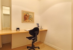 Ein separater Arbeitsbereich ermöglicht es Ihnen, in Ruhe und ohne Ablenkung zu arbeiten, falls dies erforderlich sein sollte. Das Badezimmer ist mit einer Badewanne und einer Dusche ausgestattet.
