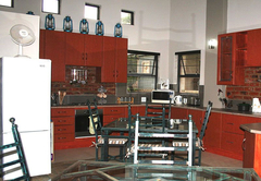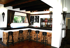 Double Bed with open plan lounge and veranda overlooking garden and swimming pool. Fully serviced, including linen and towels, en-suite bathroom with bath and shower. Access to fully equipped farm style kitchen in close proximity to the Lapa.
