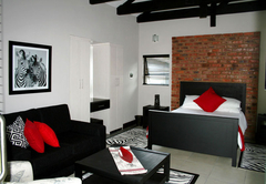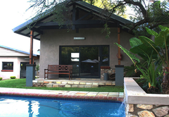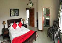 Double bed with open plan lounge (with sleeper couch) and veranda overlooking garden and swimming pool. Fully serviced, including linen and towels, en-suite bathroom with shower. Access to fully equipped farm style kitchen in close proximity to the Lapa.
