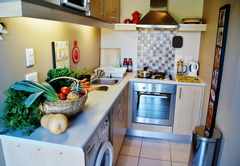The View Apartment (60 sqm) is an upmarket apartment with private entrance, separate air-conditioned bedroom (twin beds, for two single persons or a couple), en-suite bath with shower, and a sleeper couch couch (1,320 M wide) in the lounge and fully equipped kitchen with washing machine. A sunny terrace invites for breakfast in the sun or a barbeque at sun downers' time. This apartment is ideal for a longer stay!