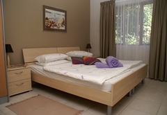 This 60+ square meter apartment is spacious and wonderfully cool in summer. It is an open-plan fully-equipped flat with a private entrance. It has a separate bedroom as well as an additional sleeper couch, a big en-suite bathroom with a shower and laundry facilities, and a full kitchen, all of superior quality. This apartment invites for a longer stay.