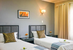 The Luxury Twin Rooms are furnished with twin beds and have an en-suite bathroom fitted with a shower, toilet and basin. Towels and toiletries are provided. The air-conditioned rooms are equipped with TVs with DStv, bar fridges, tea and coffee-making facilities, a workstation and Wi-Fi access.