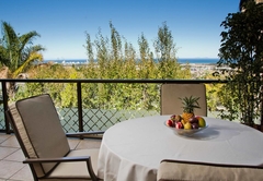 This spacious luxury suite with 140m2 offers you a kitchen, dining area and lounge. TV, air-con, high-speed internet, landline telephone and fan. The large bedroom has a huge en-suite bathroom. A terrace with sea view and a Weber gas grill for BBQ's.