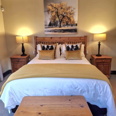 Aviemore Lodge is an Exclusive Use Holiday Home which has five bedrooms named after the seasons. Spring Room has twin beds and an en-suite bathroom with a ball and claw bath, infra-red heating and heated towel rails. Autumn has twin beds and a separate bathroom with a shower and heated towel rails. Summer has twin beds and an en-suite bathroom. Winter has a Queen-size bed and en-suite bathroom with a ball and claw bath. This room has a private patio with a view. An additional room is available with a double bunk bed. All bedroom cupboards are fitted with electronic safes for your valuables. The kitchen is fully equipped with a gas oven, hob, microwave, fridge / freezer, dishwasher, crockery and cutlery. The spacious open plan lounge / dining area has a fireplace, TV with satellite channels and home entertainment centre. The enclosed veranda has a braai that looks onto the Dullstroom Dam and nature reserve.Free standing charcoal Braai outside the kitchen.