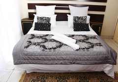 This double / twin room has a double bed or twin beds if preferred. The en-suite bathroom has a shower and a toilet. Bedrooms are comfortably furnished to the highest standard with quality linen and fittings. All rooms have a tea / coffee tray, desk and chair and a TV with DStv / satellite channels.
