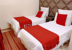This double / twin room has a double bed or twin beds if preferred. These rooms share a bathroom with a bath and a toilet. Bedrooms are comfortably furnished to the highest standard with quality linen and fittings. All rooms have a tea / coffee tray, desk and chair and a TV with DStv / satellite channels.