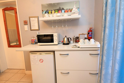 Das Zimmer mit Bad (nur Dusche) ist mit einem Queensize-Bett und einem Einzelbett ausgestattet. Es gibt einen eigenen Eingang. Zur Zimmerausstattung gehören DStv, ein DVD-Player, WLAN, ein Kühlschrank, eine Mikrowelle und eine Tee- / Kaffeestation.