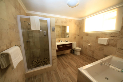 Das Zimmer verfügt über einen eigenen Eingang und ist mit einem Kingsize-Bett ausgestattet. Es gibt ein eigenes Badezimmer mit separater Badewanne und Dusche. Die Zimmer verfügen über Klimaanlage, DStv, WLAN, eine Tee- / Kaffeestation, eine Mikrowelle und eine Minibar. Parkplätze sind vorhanden.