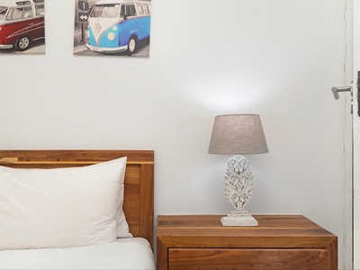 Die Wohnung bietet Platz für acht Gäste. Das erste und zweite Schlafzimmer verfügen jeweils über ein Doppelbett, während das dritte Schlafzimmer mit zwei Etagenbetten ausgestattet ist, die für vier Gäste oder Kinder geeignet sind. Es gibt zwei Badezimmer, die jeweils mit Duschen, Waschbecken und Toiletten ausgestattet sind.