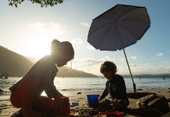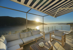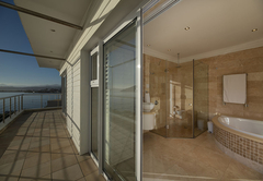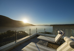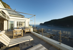 Beacon House Penthouse 5 is a self catering holiday apartment in Knysna. This apartment is situated on the 3rd and 4th floors floor on the northern side of the building. Upstairs is the living area and downstairs are four bedrooms by internal steps – the lower level (bedrooms) is also accessible by the lift. The master bedroom is furnished with a king size bed and has an en suite bathroom fitted with a bath, shower, toilet and basin. This bedroom is west facing and has views of the western Head. The second bedroom is furnished with a Queen-size bed and has an en-suite bathroom fitted with a bath, shower, toilet and basin. This bedroom is northwest facing and has views of the western Head and the lagoon. The third bedroom is furnished with a Queen-size bed and has an en-suite bathroom fitted with a shower, toilet and basin. This bedroom is east facing and has no lagoon view. The fourth bedroom is furnished with a Queen-size bed and has an en-suite bathroom fitted with a shower, toilet and basin. This bedroom is east facing and has no lagoon view. There is a fully equipped kitchen and a separate scullery and laundry. The apartment boasts a bar, dining area, lounge with DStv and a reading nook. Outside there is a patio running the full length of the apartment with weber braai, dining table and sun loungers. Undercover parking is provided.