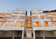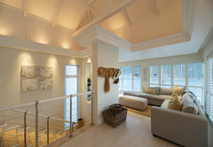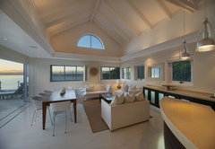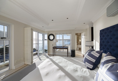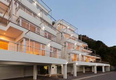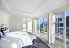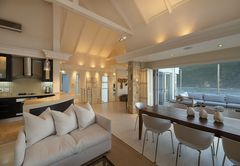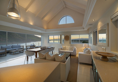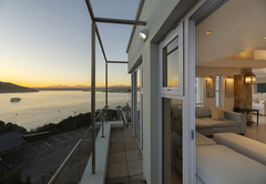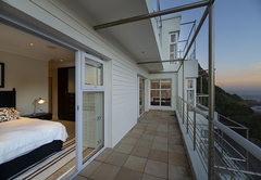 Das Beacon House Penthouse Five ist eine Ferienwohnung zur Selbstverpflegung in Knysna. Dieses Apartment befindet sich im 3. und 4. Stock auf der Nordseite des Gebäudes. Im Obergeschoss befindet sich der Wohnbereich und im Erdgeschoss befinden sich über Innentreppen vier Schlafzimmer – die untere Ebene (Schlafzimmer) ist auch mit dem Aufzug erreichbar.