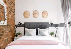 The Loft features two rooms that are suited to accommodate up to four guests in total. The main bedroom comes with a Queen-size bed and the second room features a double bed. The bathroom is fitted with a bath and an integrated shower, toilet and a washbasin. There is a stove, oven, tea / coffee making facilities and a bar fridge within the kitchen. This unit is located on the first floor with its own private entrance.