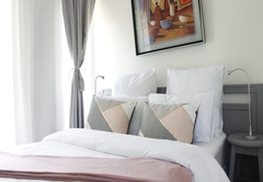 Das New Yorker verfügt über zwei Zimmer, die insgesamt Platz für bis zu vier Gäste bieten. Das Hauptschlafzimmer ist mit einem Queensize-Bett ausgestattet und das zweite Schlafzimmer verfügt über zwei Einzelbetten. Das Badezimmer ist mit einer Dusche über der Badewanne, einer Toilette und einem Waschbecken ausgestattet. Die Unterkunft verfügt auch über einen Balkon mit Blick auf die üppigen Gärten. Die Küchenzeile umfasst eine Minibar, eine Mikrowelle, einen Toaster sowie Kaffee- und Teezubehör.