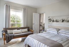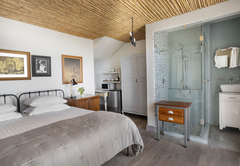Bekkie is a self catering holiday home with four bedrooms and four bathrooms, three being en-suite. The main bedroom has a King-size bed, the second and third bedroom has a double bed in each and the fourth bedroom has two single beds. Bed linen and bathroom towels are provided. There is an open plan kitchen with an oven, gas stove, dishwasher, double door fridge / freezer, kettle and a basin. The are three separate living areas and an two indoor fireplaces as well as an indoor braai. There is a patio with outside furniture where guests are able to relax and enjoy the splendid views. The house has two outdoor braai's and a double garage.