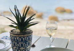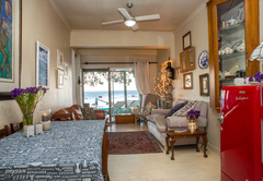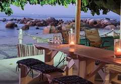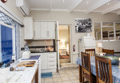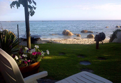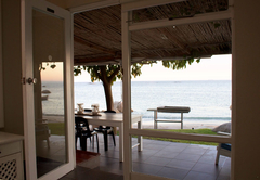 Bella Villa has three bedrooms; two are furnished with a King-size or twin beds and overlook the beach. The main bedroom has air-conditioning and the other two have remote-controlled ceiling fans. There is one full bathroom fitted with a shower, bath, toilet and basin and there is another separate toilet. The kitchen is fully equipped with a dishwasher, gas stove, electric oven, grill, kettle and microwave. The laundry room has a washing machine and tumble dryer. There is a dining table with seating for eight people.The patio is on the beachfront, but protected from the wind and sun with roll-up screens. A portable braai is provided.