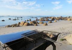 Die Terrasse liegt direkt am Strand, ist aber vor Wind und Sonne geschützt und hat einen Roll-up-Bildschirm. Ein tragbarer Braai ist vorhanden.