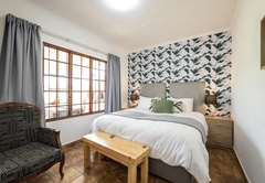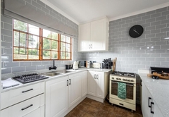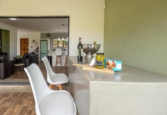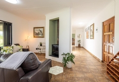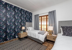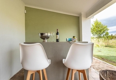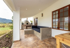 There are two bedrooms, one furnished with a King-size bed and the other furnished with two single beds. There is a sleeper couch in the lounge for children. The bathroom is fitted with a bath, shower, toilet and basin. This villa is fitted with all the latest modern amenities and has a fully equipped kitchen with everything needed for your self catering stay. The comfortable lounge has a fireplace and there is Wi-Fi. The view from the villa is superb, and overlooks our vlei teeming with bird life. Outdoor area has pizza oven and large outdoor veranda.