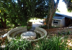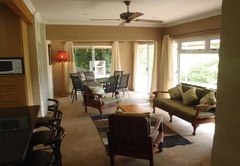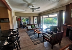 Der Wohnbereich ist komfortabel und verfügt über einen Fernseher mit DStv und einen gemütlichen Kamin. Es gibt eine voll ausgestattete Küche mit einem Gasherd, Kühlschrank, Mikrowelle, Wasserkocher, Geschirrspüler, Geschirr und Besteck etc. Es gibt auch einen Esstisch, wo Sie Ihre Mahlzeiten genießen können.