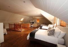 Es gibt eine Lounge im Obergeschoss mit drei Doppelbetten, einem Fernseher mit DStv und einem DVD-Gerät. Dieser Bereich öffnet sich auf eine Terrasse mit Bergblick.