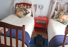 This bedroom offers a king-sized base and twin mattresses. The bed can be made into a double or twin bed (please specify which you would prefer). This room comes with an en-suite bathroom (with a shower). Unfortunately, this room does not offer views.