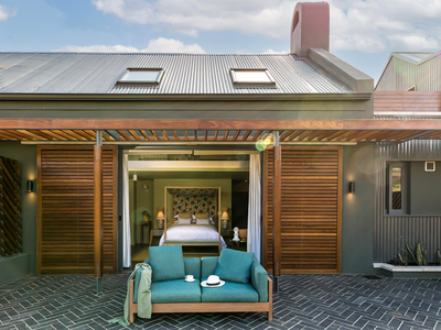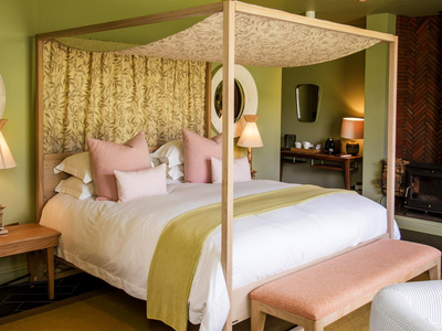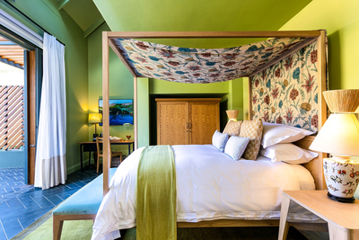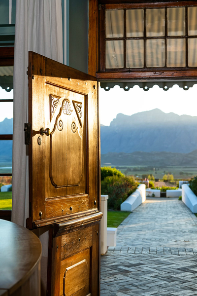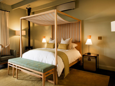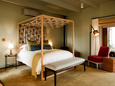 This beautifully restored suite is the only original room within the Manor House, featuring a striking yellowwood ceiling dating back to 1790. Conveniently located with access from reception, the suite overlooks the stoep and does not offer direct access to the swimming pool, preserving its peaceful, historic charm.