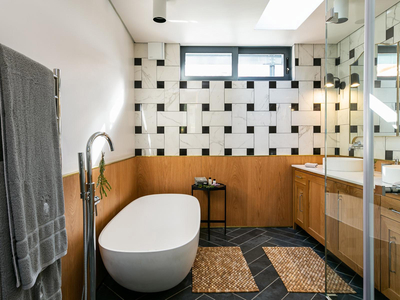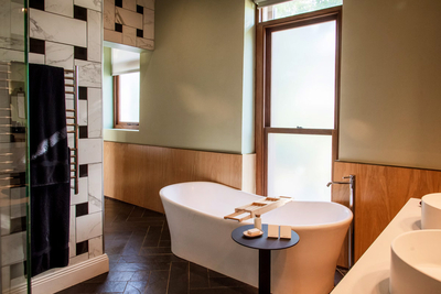 This spacious suite is located in a quieter section of the guesthouse, offering a peaceful retreat with calming garden views. The room features a queen-size bed and a full en-suite bathroom with a separate tub and shower, designed for both comfort and relaxation.