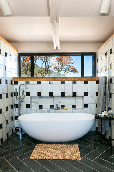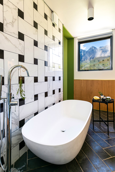 The full en-suite bathroom includes a separate tub and shower, along with plush bathrobes, slippers, and a selection of premium amenities. Additional touches include a hairdryer, coffee and tea-making facilities, and a well-stocked bar fridge. With sweeping mountain views and tranquil surroundings, this suite promises a truly memorable retreat.