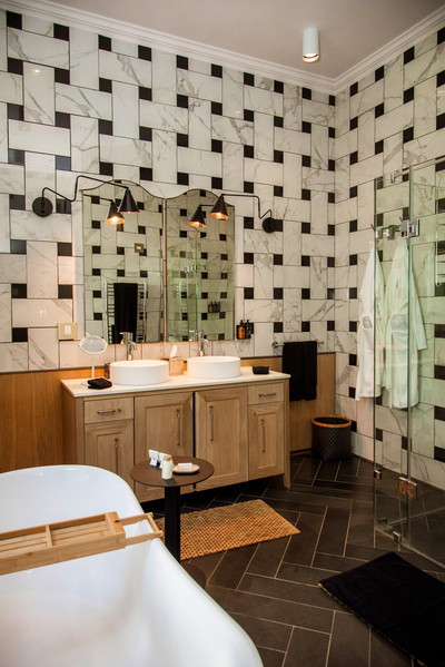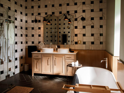 The Executive Suite is the epitome of luxury, featuring its own private balcony with sweeping views over the Bergkamp. Designed for both comfort and indulgence, the suite includes a spacious lounge area ideal for unwinding, along with a refined workspace for those needing a desk. The elegant bathroom offers two individual showers and a separate bathtub, creating a spa-like experience.