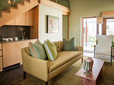 The suite is well-appointed with a sitting area, air conditioning, a fireplace, a secure safe, and a flat-screen TV with DStv/Satellite channels. Guests also enjoy complimentary Wi-Fi, daily cleaning service, and evening turndown for added comfort. This is a non-smoking suite designed to blend relaxation with convenience.