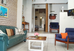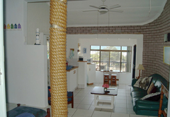 Breakerview 3 is a sea facing family unit sleeping four guests in two separate bedrooms. The first room is furnished with a King-size bed and the second room is furnished with twin beds. The bathroom is fitted with a shower, toilet and basin. The unit is neat and comfortable and has a sitting area with a TV and satellite channels, a dining table looking out the window and a well equipped kitchen with a fridge / freezer, microwave, counter top oven and hot plate. There are braai facilities out on the deck as well as a table and benches where you can sit and admire the view. Under cover parking is provided.