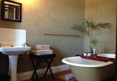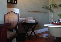 Im Obergeschoss sind die vier Doppelzimmer mit Bad am Bredasdorp Square geräumig und elegant in klarem Weiß gehalten. Jedes Zimmer verfügt über ein viktorianisches Bad der alten Welt. Von der im Kolonialstil eingerichteten Veranda können Sie sich entspannen und über das Strandveld zu den Arniston Dunes blicken. Alle Zimmer bieten Queen-Size-Posterbetten mit Perkal-Bettwäsche. Zwei haben ein Zustellbett, das für Familien geeignet ist.