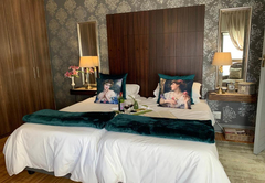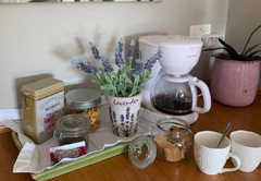 The Provence Room - tastefully decorated with a spacious interior along with percale linen, Queen-size bed and two single beds and private en-suite bathroom with amenities. The room has a kitchenette with a two plate stove, microwave, kettle toaster, fridge and a dining area. In addition, each room contains free Wi-Fi internet, air conditioning, a TV with selected satellite channels, and Wi-Fi.