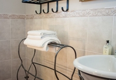 Spacious, modern victorian has a king bed and a single bed, with full victorian bathroom including ball and claw bath. This room is ideal for 3 sharing. Gas fireplace available in this room. Tastefully decorated rooms each with en-suite bathrooms and a range of extra luxuries such as private entrances, colour TV with DSTV and video channel. Radio / Clock and tea making facilities