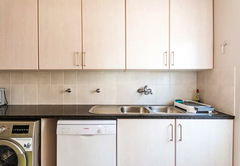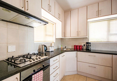 Die Küche ist für Selbstversorger gut ausgestattet und verfügt über einen Kühlschrank mit einem Herd, einem Backofen, einen Wasserkocher und einen Toaster. Der Essbereich verfügt über einen Sechssistand-Esstisch und -stühle.
