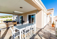 Das Capri House bietet Platz für bis zu sechs Gäste in drei Schlafzimmern. Das Haus verfügt über zwei Bäder, eine offene Küche, einen Ess- und Wohnbereich.