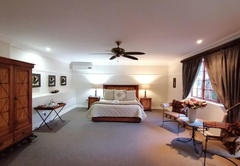 This Luxury Room is furnished with a Queen-size bed. The en-suite bathroom is fitted with a bath, toilet and basin. All of the rooms are air conditioned and have bathroom amenities, tea / coffee making facilities, bar fridge, personal safe, hairdryer, ironing facilities, Wi-Fi, TV with satellite channels and are serviced daily.