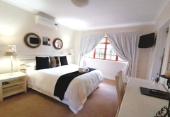 This Luxury Room is furnished with a Queen-size bed. The en-suite bathroom is fitted with a shower, toilet and basin. All of the rooms are air conditioned and have bathroom amenities, tea / coffee making facilities, bar fridge, personal safe, hairdryer, ironing facilities, Wi-Fi, TV with satellite channels and are serviced daily.