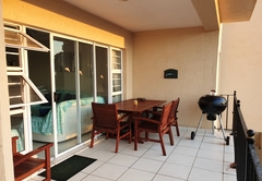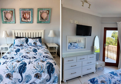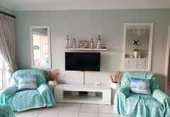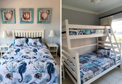 Casaurina Sands 204 is a spacious self catering apartment that has two bedrooms and two bathrooms. There is a well sized open plan living area that is comfortably furnished with a two couches and an armchair. There is a flat screen TV as well as an Open View HD decoder – but please bring your SmartCard. The kitchen is well equipped for self catering and includes a fridge-freezer, an oven, microwave, stove, washing machine and kettle.