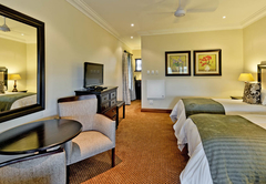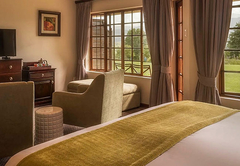 Yellowwood Double/Twin Rooms are furnished with a double/twin bed with seating area and en suite bathroom fitted with a separate shower, bath, toilet and basin. The rooms available are in the Yellowwood block, 3rd wing of the hotel, furthest from facilities but still within walking distance. Approximately 200m away from facilities. Upstairs rooms have a view of the mountain but overlook the car park and ground floor rooms have a hedge in front then the car park, so no view of the mountain.