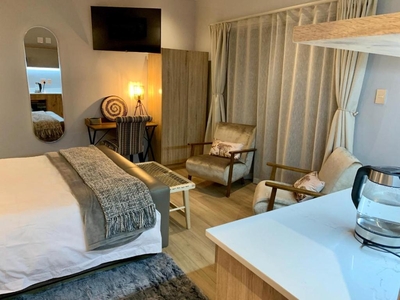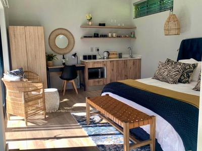 The studio is fitted with air-conditioning, a smart TV with Netflix, complimentary Wi-Fi, a secure safe, and a cosy sitting area with a desk. The kitchenette includes a microwave, bar fridge, and tea- and coffee-making facilities, perfect for light self-catering. Guests can also enjoy the outdoor seating and dining area set amid peaceful garden surrounds.