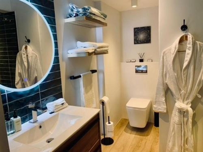 Jedes Zimmer ist mit hochwertiger Hotelwäsche, Smart-TVs mit Streaming-Funktion, Highspeed-WLAN und Annehmlichkeiten wie Kaffee- und Teezubereitungsmöglichkeiten, Minibars und Mikrowellen ausgestattet. Die Badezimmer bieten ein luxuriöses Ambiente mit weichen Bademänteln und hochwertigen Pflegeprodukten. Gäste können sich auch im Garten neben der Terrasse entspannen. Bequeme Sitzgelegenheiten und ein Esstisch bieten den idealen Rahmen für ruhige Momente oder gemeinsame Mahlzeiten.