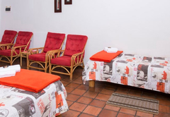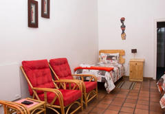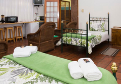 Family cottage. 3 Rooms, en-suite. Fully equipped kitchen. Air-conditioned lounge, Rooms has roof fans. All units have a kitchenette with a kettle, microwave, fridge, crockery and cutlery. TV with satellite channels is provided as well as free Wi-Fi.