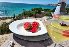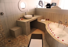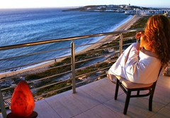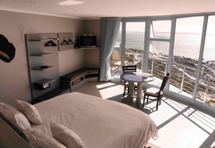 The Honeymoon Suite is a large double room with floor to ceiling picture perfect sea-facing windows. The room is furnished with a King-size bed and the full en-suite modern bathroom is equipped with a bath, shower, hand basin and WC. The suite has a private balcony with 180-degree sea views. Facilities include bathroom amenities, wireless internet connection, coffee and tea facilities, television, DSTV/ Satellite television, complimentary high speed internet in room, desk. Non-smoking, refrigerator.