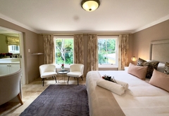 The Luxury Suite is furnished with a king-size bed with a sitting area. The en-suite bathroom is fitted with a shower, toilet and basin. It features a Flatscreen Smart TV, Netflix, Nespresso Coffee Machine and Kettle, Egyptian Cotton Linen, Wi-Fi. Breakfast is included.